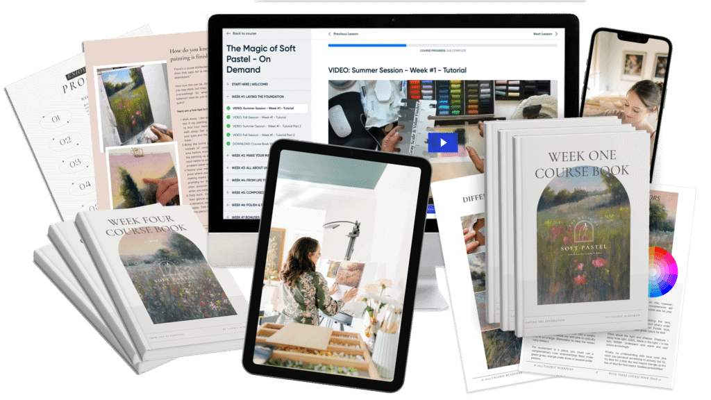 My personal artistic passion is in the magical medium of soft pastel. My signature work-at-your-own-pace online art course, The Magic of Soft Pastel, will spark your creativity, teach you the unspoken language of landscape art, and help you express the beauty of the world around you.